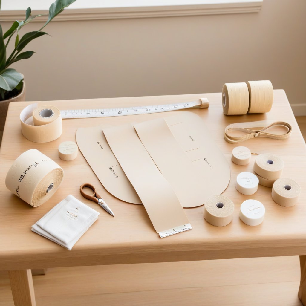 Ter um conjunto básico de fita bia normal e adesivos confortáveis facilita a aplicação e reduz atritos na pele.